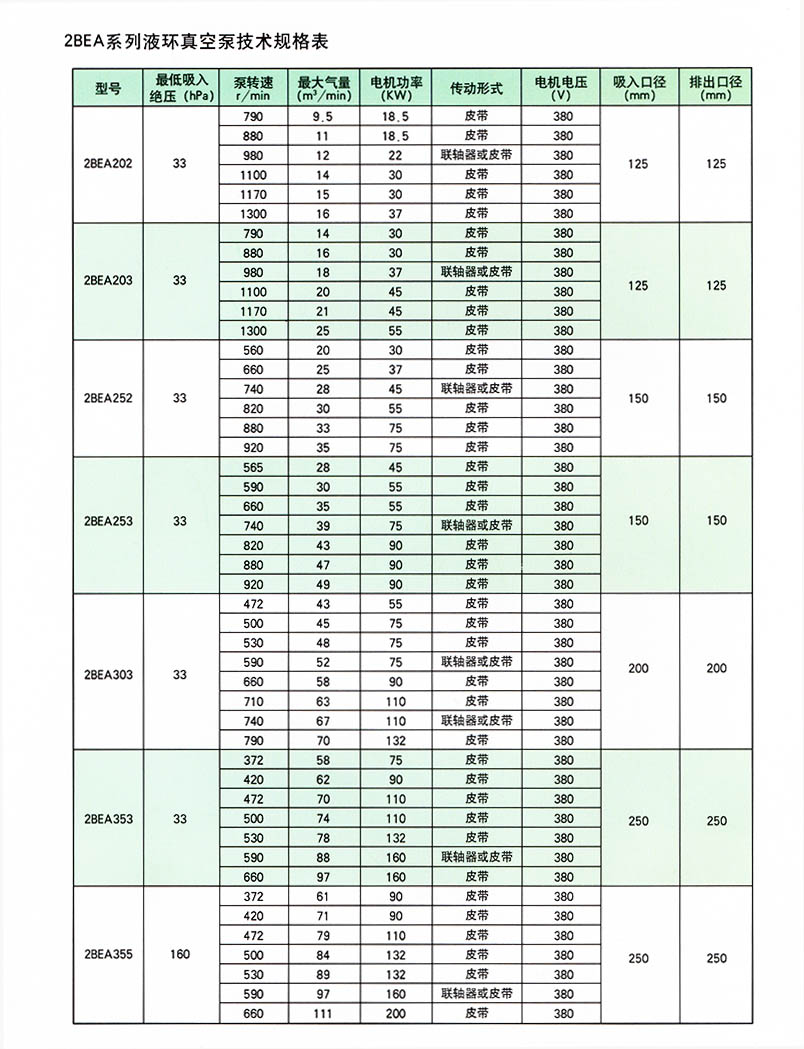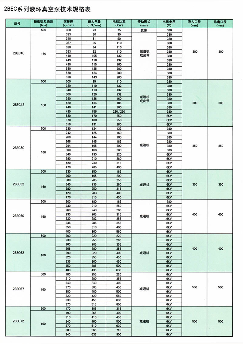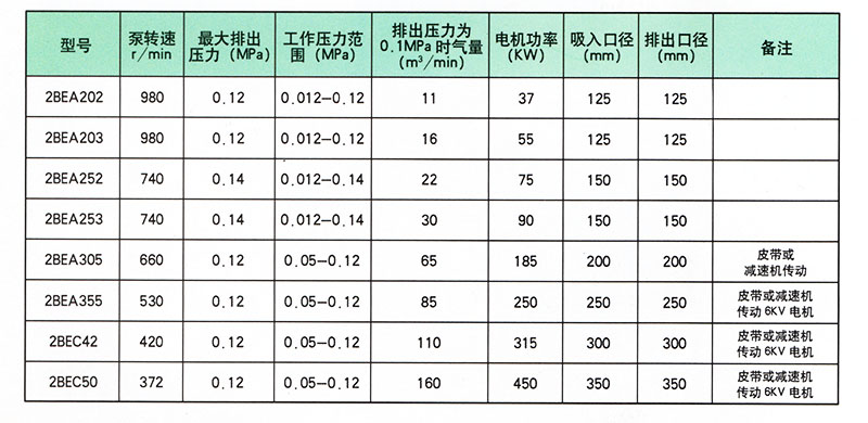 (2) 2BEA/2BEC系列液环式真空泵及压缩机,代表液环泵行业较新技术,其效率比同类设备高,节能效显著, 并且非常适用于长期连续运行,特别适用于煤矿瓦斯抽放等工况极为苛刻的条件,受到该行业的广泛好评。